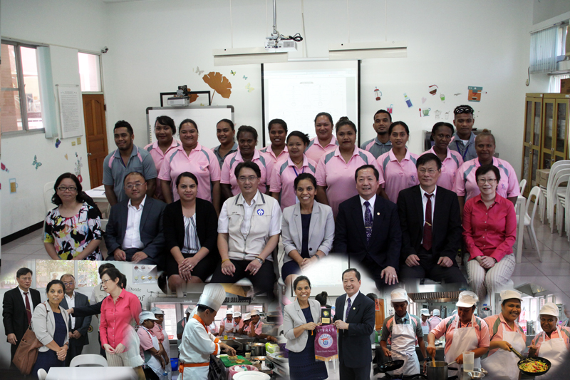 太平洋友邦技職訓練諾魯大使本校巡視該國學員上課情形太平洋友邦技職訓練計畫是財團法人國際國合作發展基金會所提計畫,由勞動部勞動力發展署雲嘉南分署所承辦,計畫開設「餐飲烘焙訓練班」及「旅館民宿經營管理訓練班」兩個班,雲嘉南分署則開設「餐飲烘焙訓練班」,台灣首府大學飯店管理學系主任賴朝煌則提報計畫爭取到「旅館民宿經營管理訓練班」的課程,該計畫自本月四日開訓後展開。 四十八位學員當中分別來自諾魯、帛琉、馬紹爾群島、吉里巴斯、所羅門群島及吐瓦魯等六國,參加「旅館民宿經營管理訓練班」的學員共有十四人,其中來自諾魯共和國的學員共有兩人,諾魯共和國駐台灣大使簡慈珠(Chita Jeremiah)在外交部人員的陪同下南下台南巡視該國學員上課情形。 首站先到本校巡視,勞動部雲嘉南分署分署長柯呈坊率分署主管陪同簡慈珠大使巡視,台灣首府大學校長許光華在計畫主持人賴朝煌的陪同下,為簡慈珠大使一一介紹學員上課情形及教室設備。 簡慈珠大使巡視時,學員們正由餐旅系林儒蘊老師介紹葡萄酒的種類及特性,簡慈珠在許光華校長的安排下,與兩位來自諾魯的學員做簡短的溝通,了解她們在台灣學習情形後,與所有學員們大合照,一行人離開前經過巧克力教室,洽巧高中、職學校老師在上巧克力研習課,校長許光華引領簡慈珠大使等人進巧克力教室參觀,讓來自諾魯的大使留下深刻印象。 ![]() 瀏覽數