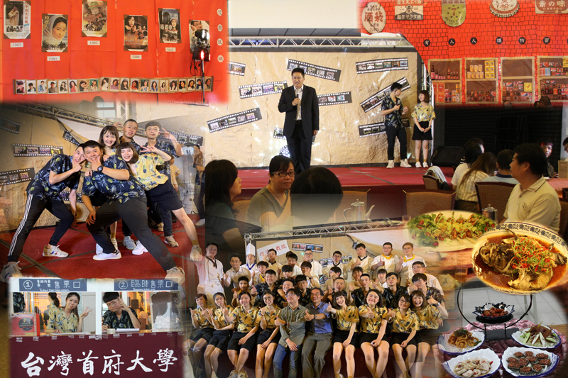 餐旅系四B畢展翻出父母年代照片家長邊吃邊「拾憶」為讓師長們見證他們四年來所學,本校餐旅系畢業前皆會以班級為單位,安排一場畢業成果展,成果展則是宴會方式進行,至於如何呈現,則全交由學生們自行開會決定。餐四B為了讓畢業成果展別出心裁,經過多次開會的爭執後,終於有了共識,決定讓爸媽及師長們回到小時候的年代,在時光戲院中用餐。 有了共識後開始推出總召集人,由余健亮擔任這次活動總召,緊接著分工,由李潤泰擔任內場主廚、外場兼會場佈置則由李家玫、黃建彰、柯寶媚、張芷維、潘紹慈及黃冠迪負責。另外,這次大會主持則是由李明修及黃琍瑩擔任。 晚上六點整致遠樓中庭前的售票亭開始營業,賓客入席前開始登記並領取摸彩券,做為參加晚會娛興節目的票根;校長戴文雄、旅館管理學院院長兼餐四B導師李明靜及餐旅系的老師等都受邀參加,現場也有不少學生家長及親友團與會。 這次主廚李潤泰為讓與會來賓吃到最新鮮的食材,特地回到老家佳里區尋求親友們的協助,購買到最新鮮的海鮮,包括小鮑魚、石斑、草蝦及其他海產等。「拾憶大戲院」的晚宴共有十道菜,分別是山珍海味豪華拼盤、火腿杏菇煨雞湯、翡翠山葵富貴蝦、紅槽香紋路易排、廣式葱油蒸石斑、醬炒牛肉拌翠蔬、家嫏臘味煲仔飯、叉燒酥、楊枝甘露及時令水果。 菜色豐富不遜於一般餐廳的宴會菜,加上精彩的歌唱表演及趣味的摸彩活動,帶動了熱鬧的宴會氣氛,給師生及家長們有一次難忘的晚宴。 ![]() 瀏覽數