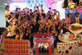 本校由餐旅系許煜忠老師擔任導師班的餐4D,雖然成果展以晚宴的型態展現,設計一場東洋風味十足的美食饗宴,新鮮生魚片、炙燒的干貝搭配「鳥居」造型的大門、兩側大紅.